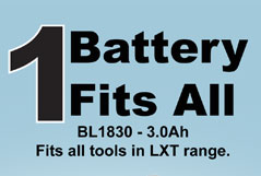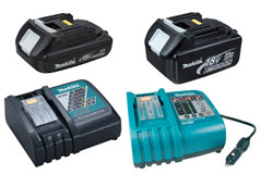 Find Out More >18V Rechargeable Batteries (BL1850 5.0Ah, BL1840 4.0Ah, BL1830 3.0Ah, BL1815N 1.5Ah and BL1815 1.3Ah) and 18V Battery Chargers (DC18RC and DC18SE)