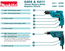 - In-line design brings drilling pressure in line with centre of drill bit axis.