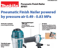 Drives 16 GA nails from 25-64 mm (1"-2-1/2") length