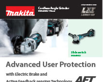 - Kickback User Protection turns the motor o if rotation speed suddenly slows or wheel is forced to stop.