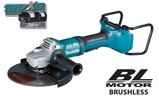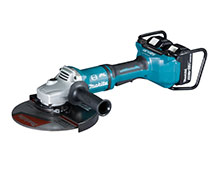 Spiral bevel gears for smoother rotations and a more efficient transfer of energy. Battery protection circuit protects against overloading, over-discharging and over-heating. Side grip can be installed on either side of the tool for operator convenience. Wheel cover protects operator from accidental scattering of broken wheel or workpiece with minimal wheel cover movement. Spindle lock for easy wheel changes