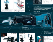- Double Insulation, Variable Speed, Orbital Cutting, Soft Start, Constant Speed, Torque Limiter, and Carry Case.