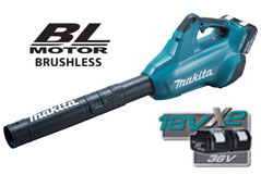 18V + 18V, the use of two 18V lithium-ion batteries to produce 36V power. Brushless motor. The DUR368AZ has been designed to suit the needs of commercial end users in mind who are looking for a high powered, quiet and easy to use alternative to a petrol machine, without the compromise on power..