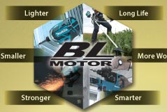 High performance Brushless DC motor. Auto speed function that changes speed according to load condition. Electric brake quick stop. Durable and lightweight with magnesium base, blade case and safety cover. LED control lamp