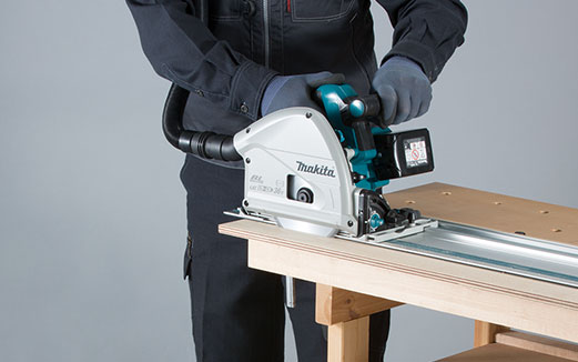 Electric brake for improved productivity and increased operator safety.Rubberized handles for added comfort. Large rear dust port directs material away from the operator and easily connects to a vacuum system. Tip-resistant design minimizes the machine from falling down.Onboard hex wrench for fast and easy blade changes.Battery protection circuit protects against overloading, over-discharging and over-heating.Compatible with optional guide rail for increased maneuverability