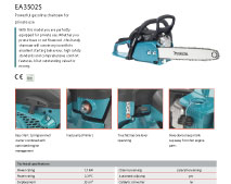 - Anti-Vibration, Automatic Oiling, Chain Brake, Primer Pump, Capacitor Discharge Ignition and Rapid Start